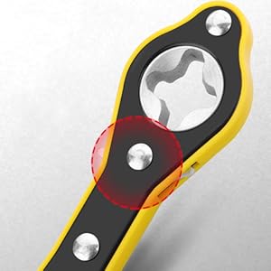 The auto jack ratchet wrench is designed with reinforced rivets for a strong and durable structure.