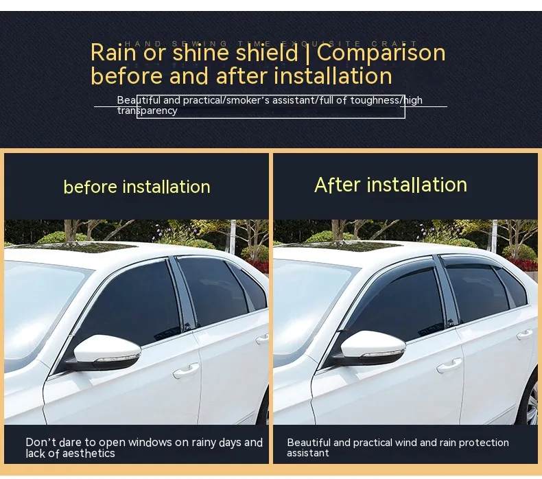Rain block boards shield your car windows from rainwater, ensuring a clear view even in challenging weather conditions.