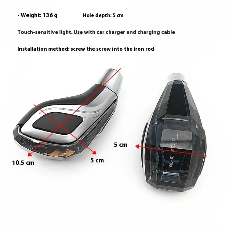 Installation method: Remove the gear shift head of the original vehicle, directly screw in the crystal gear shift head, rotate it in the