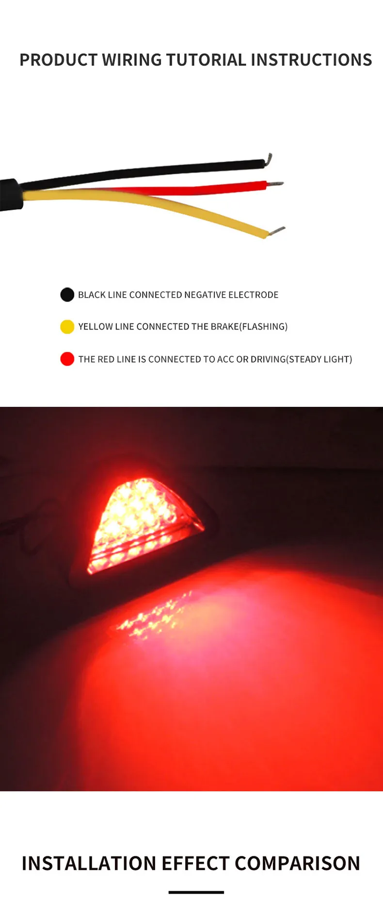 Car Motorcycle Universal LED Rear Fog Light Triangle Brake Warning Light Heelpiece Pilot Light