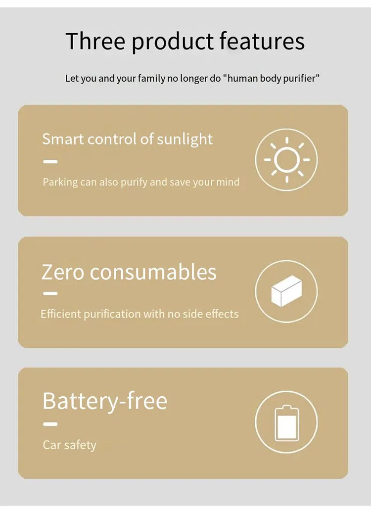 Device. Designed to sit neatly on your dashboard or other flat surfaces, it uses solar energy to power an advanced air cleaning system that