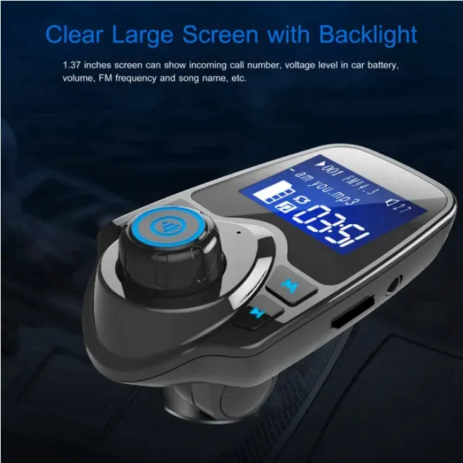 Bluetooth car FM transmitter – wireless music streaming, hands-free calling, dual USB fast charging, and LED display for modern driving in