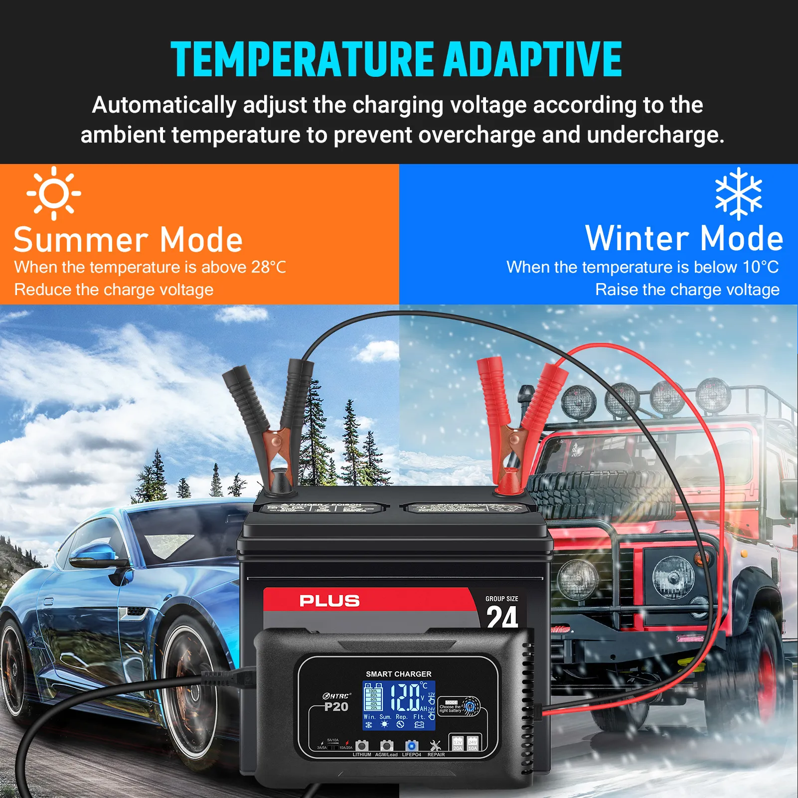 Suitable for routine maintenance charging and emergency battery recovery.