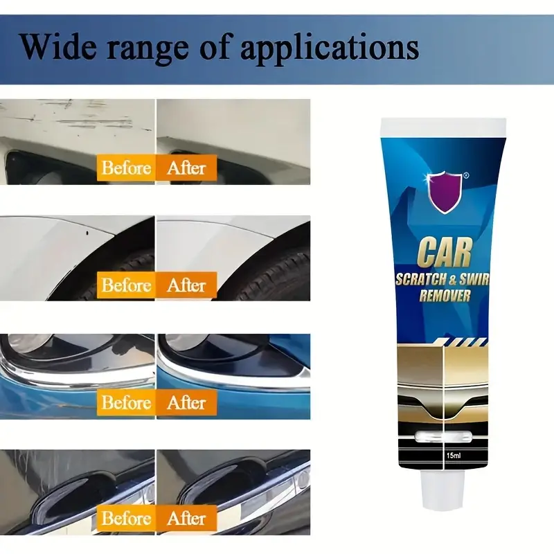 Easy to apply: simply use the right amount of car scratch repair wax on the affected area of your car, then wipe it with a sponge to make your car surface shiny and glossy. A handy car care product: this car paint scratch repair kit is excellent for eliminating scratches or swirls caused by accidents, bringing back the shine of your car. The swirl remover for cars contains gentle and safe ingredients that won't damage your car's paint.Included in this vehicle polishing wax kit is an additional sponge for applying the wax. This sponge can also be used for dusting or cleaning the car's surface.
