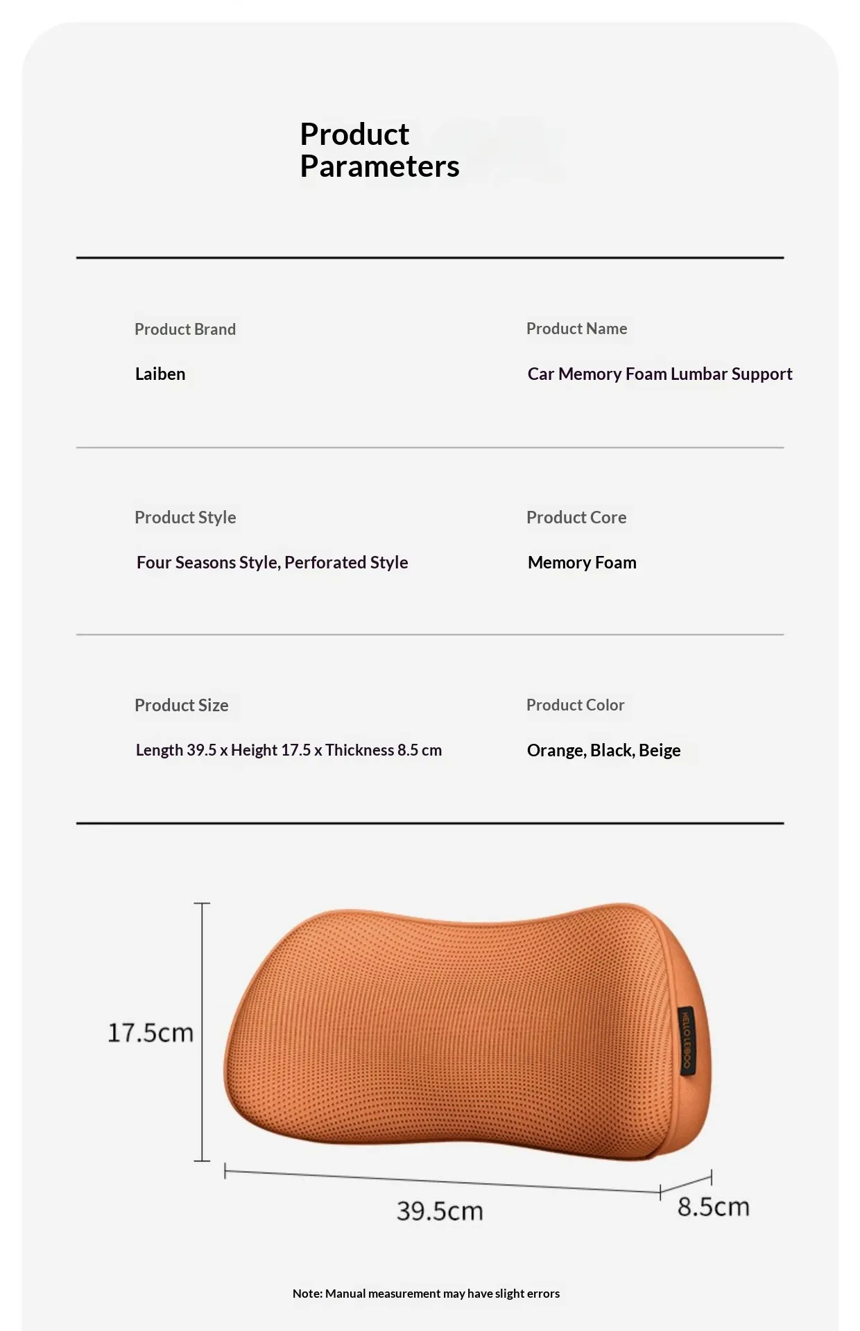 Memory foam lumbar support — Four-season model — Royal Orange, Memory foam lumbar support — Perforated model — Beige-Black ×1, Memory foam
