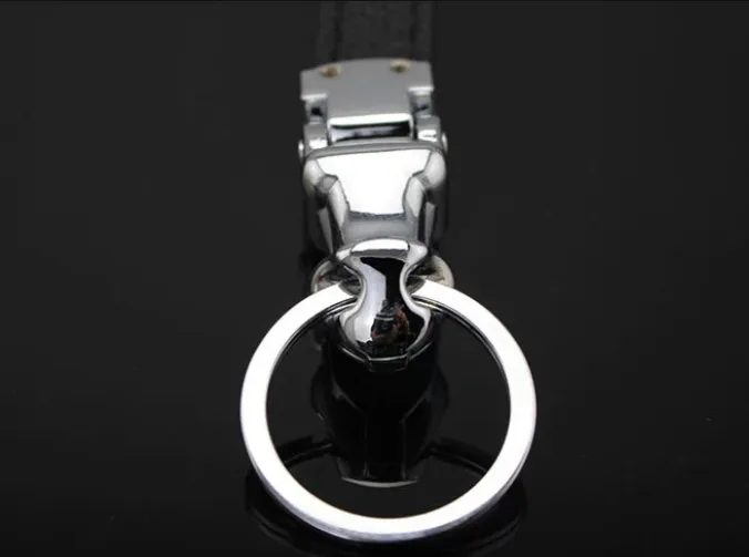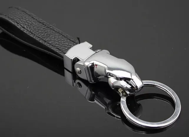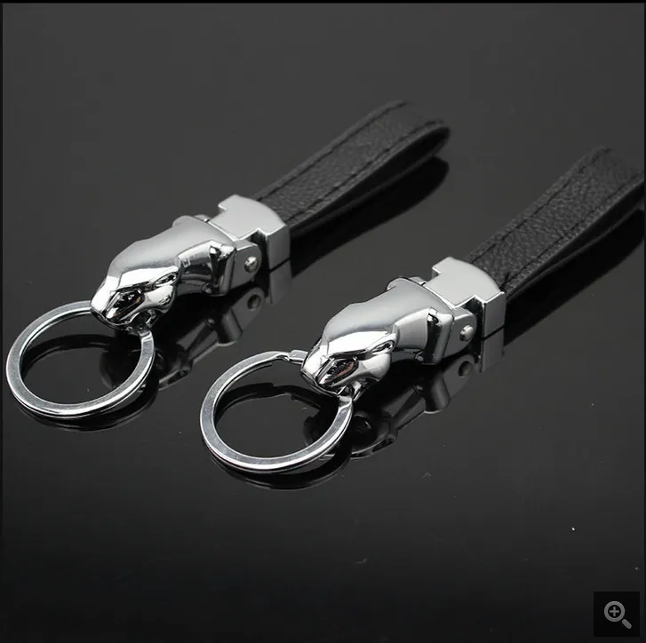 Car-styling Luxury Leopard Head Genuine Leather Key Chain Key Rings Holder Metal KeyRing