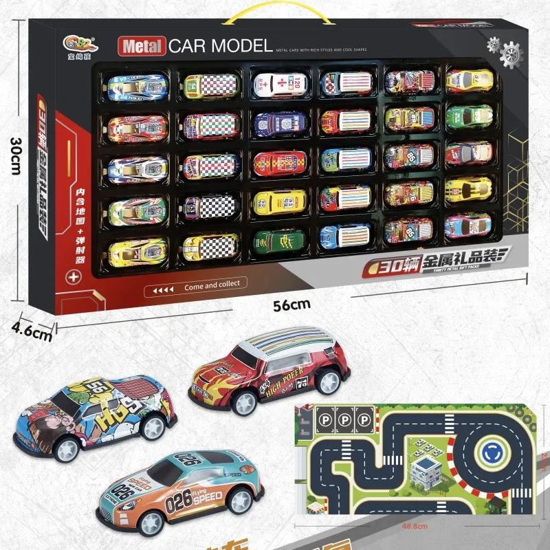 metal car sets [small box], 12 metal car sets, 6 special effects 7 cars with ejection [big gift box] - 13, 30 metal cars with map [big gift