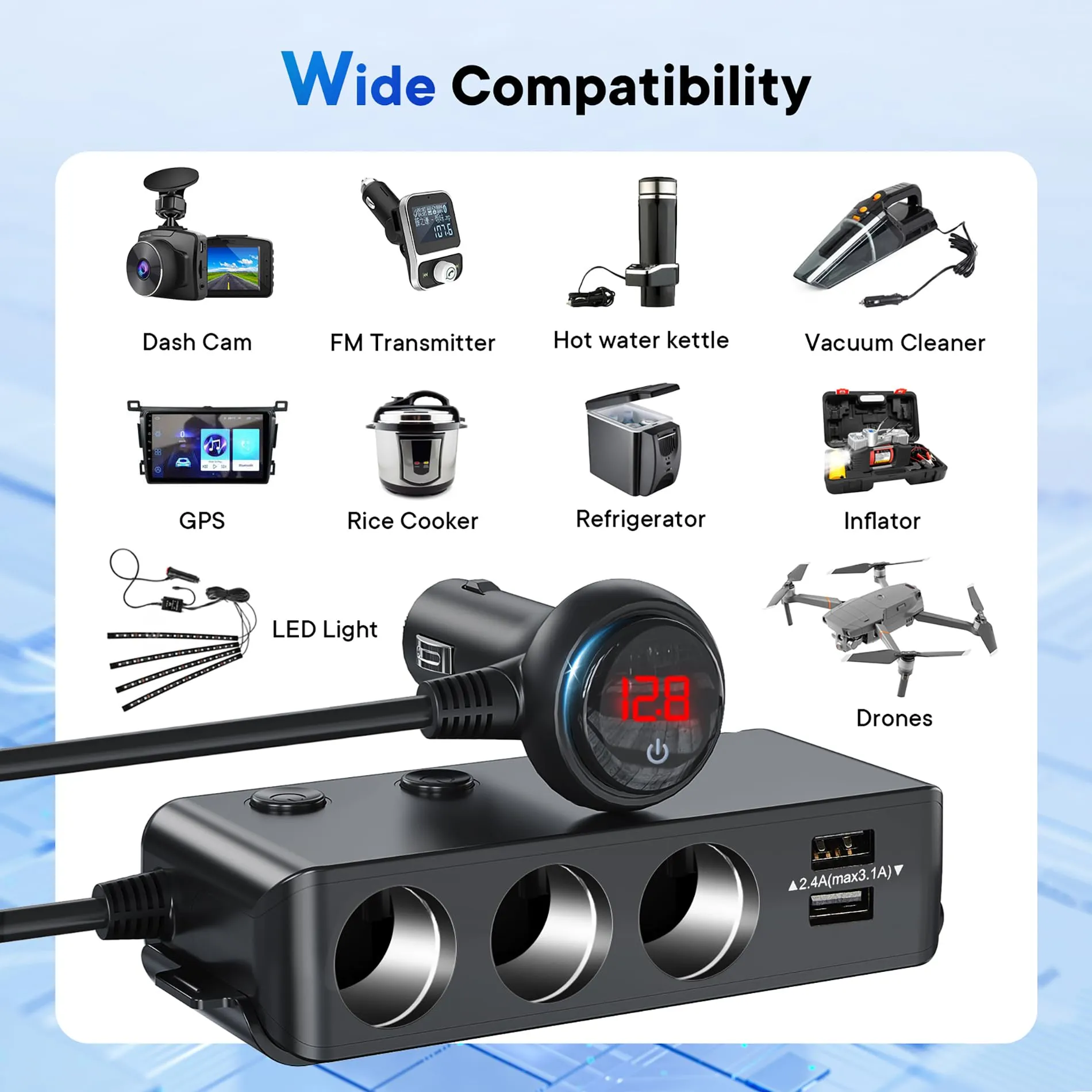 Dual Functionality: Combines two USB charging ports with a traditional cigarette lighter, allowing you to power multiple