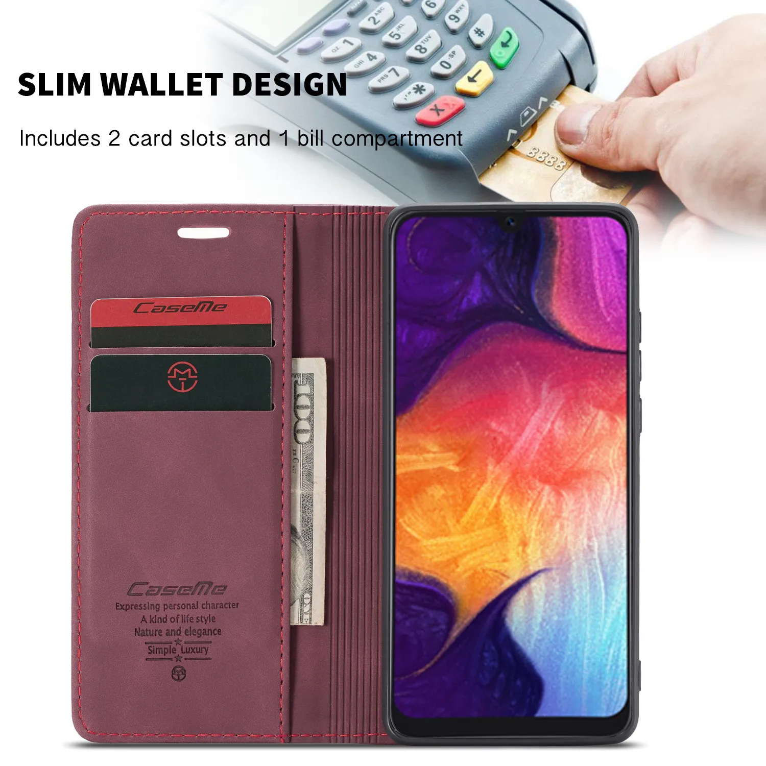 Made from high-quality materials, this clamshell case provides excellent shock absorption and durability. The anti-fall design protects your device from scratches, bumps, and accidental drops, while the integrated card holder keeps IDs, credit cards, or transit passes within easy reach. Its slim profile ensures portability without adding bulk.