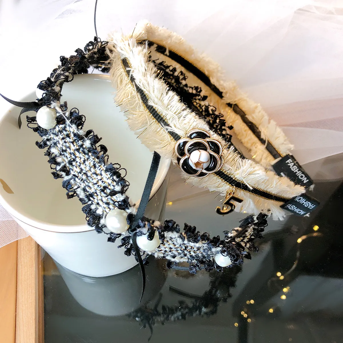 Color: Beige No. 5, Black and White Pearl, Black and White Camellia