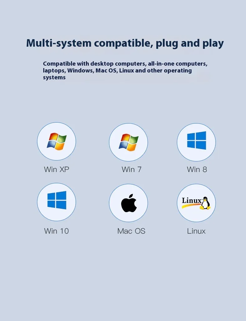 - No drivers needed – plug and play