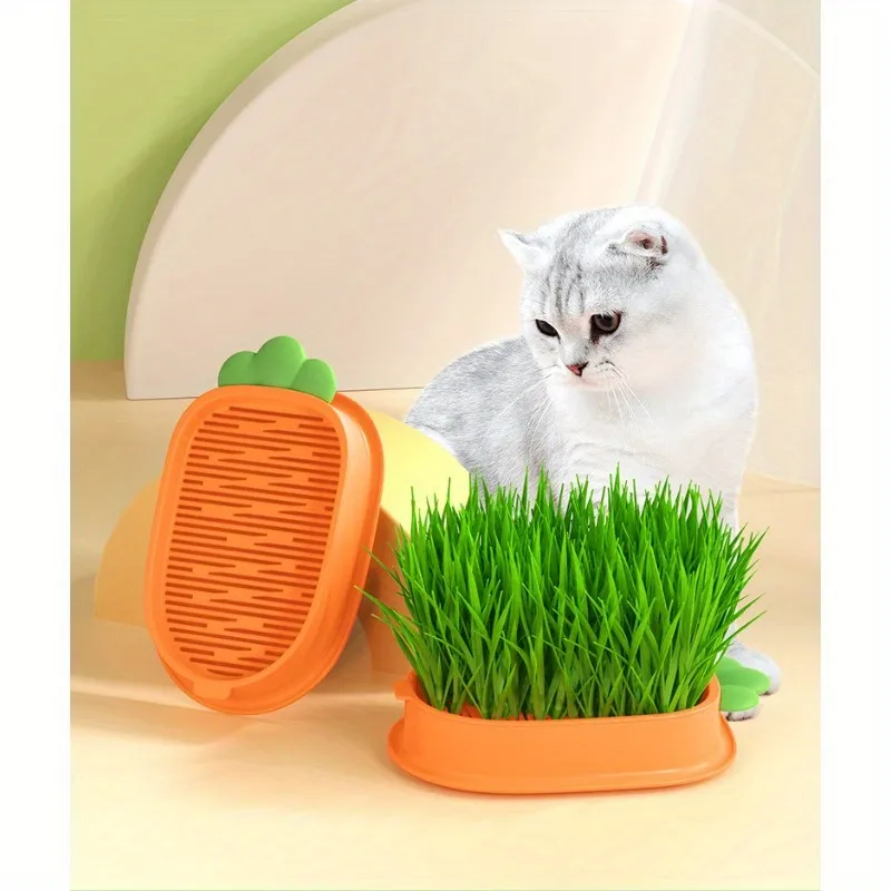 Carrot Design Cat Grass Growth Kit Grass Planting Box Plastic Pet Grass Tray Pet Supplies Including Seeds