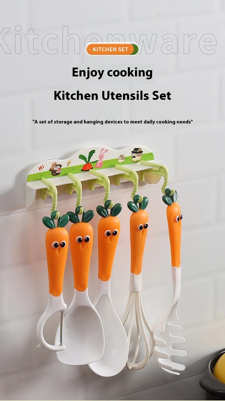 The Carrot Kitchen Tools Suit with Storage Hook is designed for home cooks who appreciate both functionality and organization. This complete set includes essential kitchen tools specifically crafted for preparing vegetables, particularly carrots, while the included storage hook ensures easy access and neat storage.