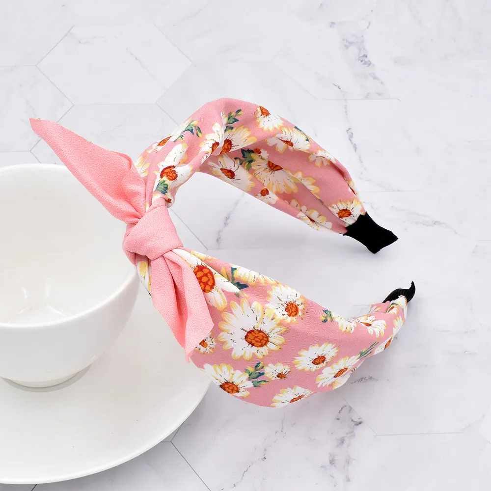 Cartoon Daisy Wide-brimmed Headband Fabric Knotted