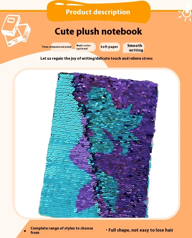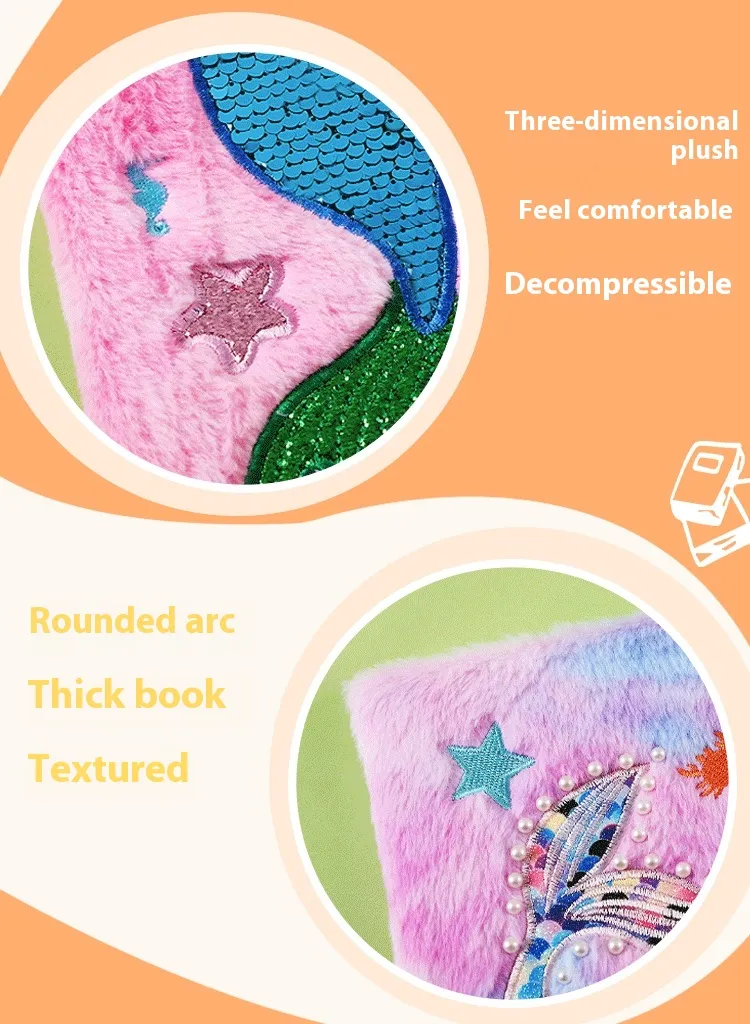 Adorable Fishtail Plush Design: The notebook is beautifully designed with a soft and plush fishtail pattern, making it both