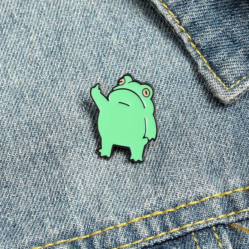The Cartoon Funny Creative Vertical Middle Finger Frog Alloy Brooch is a bold and humorous accessory that blends playful cartoon style with a touch of rebellious flair. Featuring a quirky frog design with a raised middle finger, this enamel brooch is the perfect way to add a fun and cheeky twist to your outfit. Whether you're looking for a conversation starter, a unique gift, or just want to express your fun-loving side, this brooch is sure to stand out and get noticed.