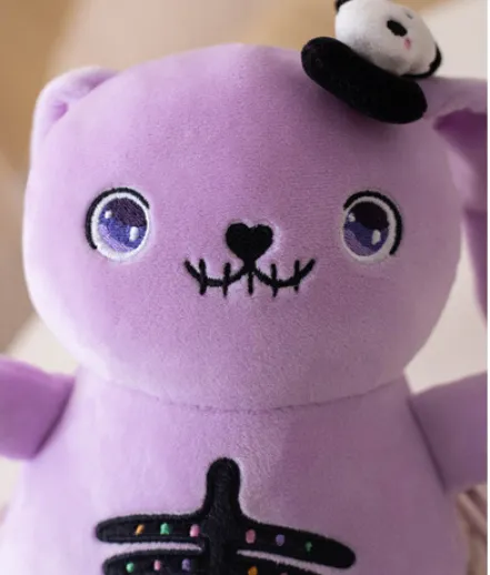 Fun and Playful Design: Its combination of cute cartoon features and dark, skull elements makes it a standout piece that