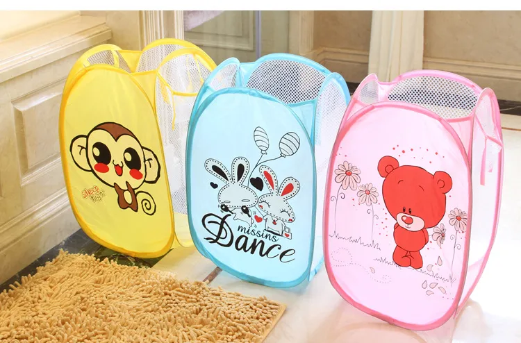 Summary: cute cartoon print, mostly color, three-sided grid, store dirty clothes, play