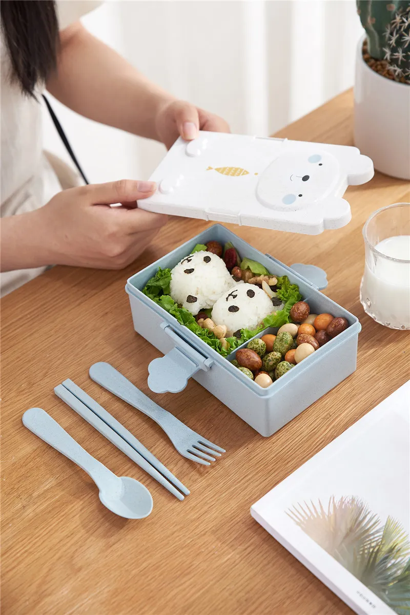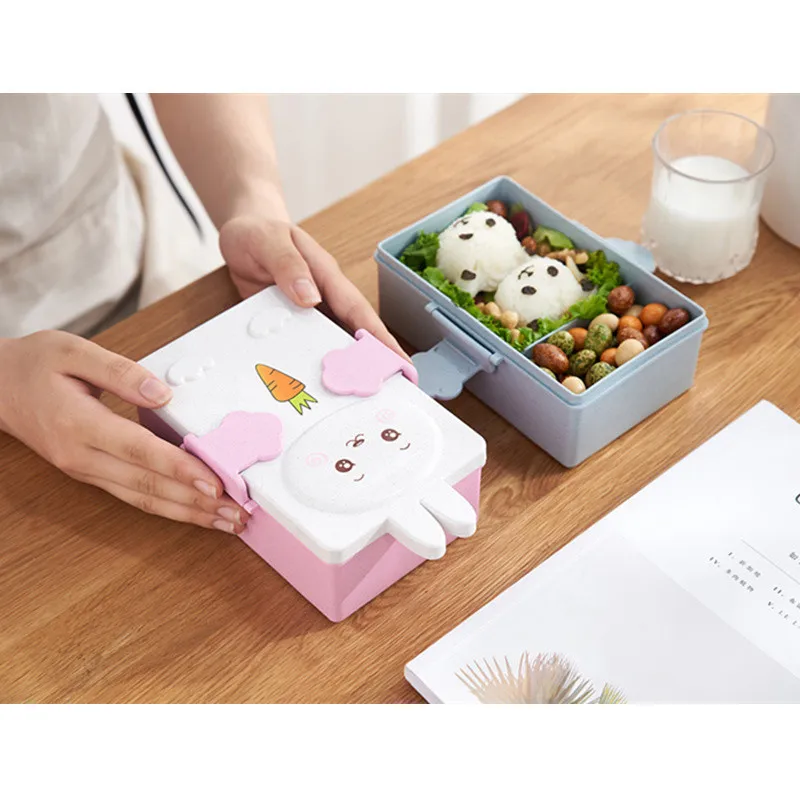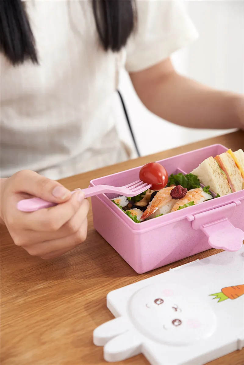 The Cartoon Wheat Straw Bento Box for Children is an excellent choice for parents looking for a durable,