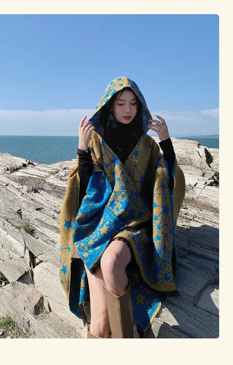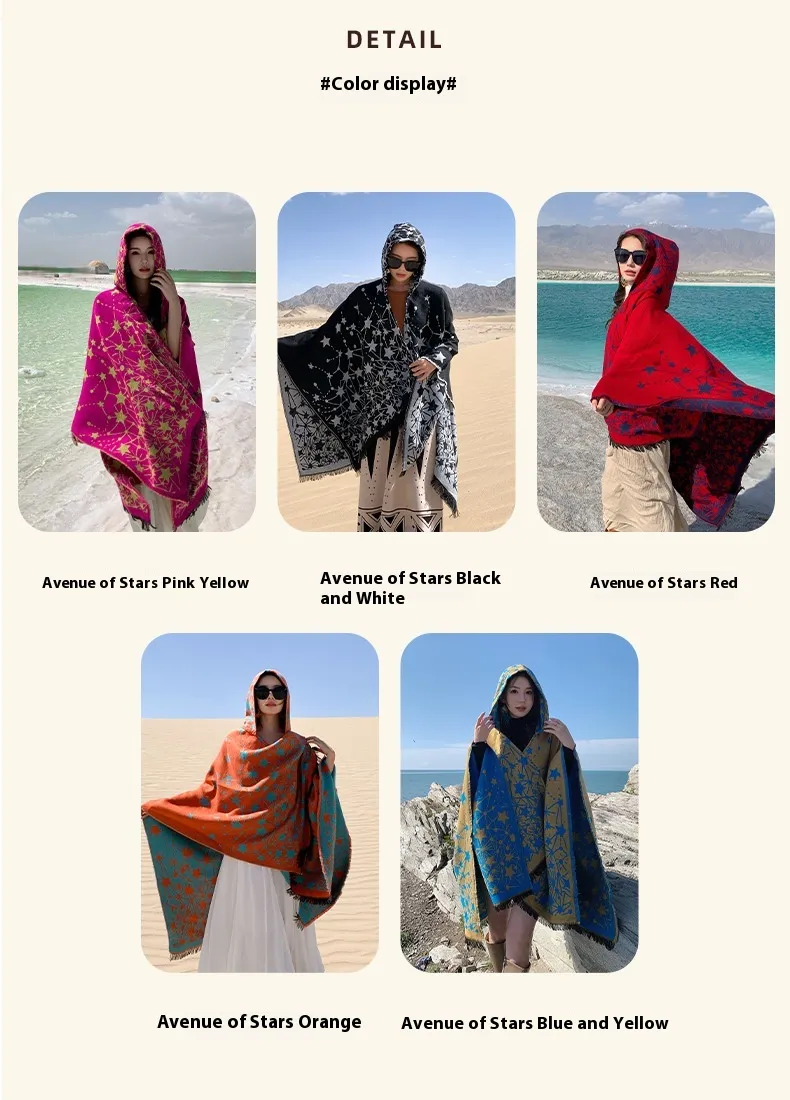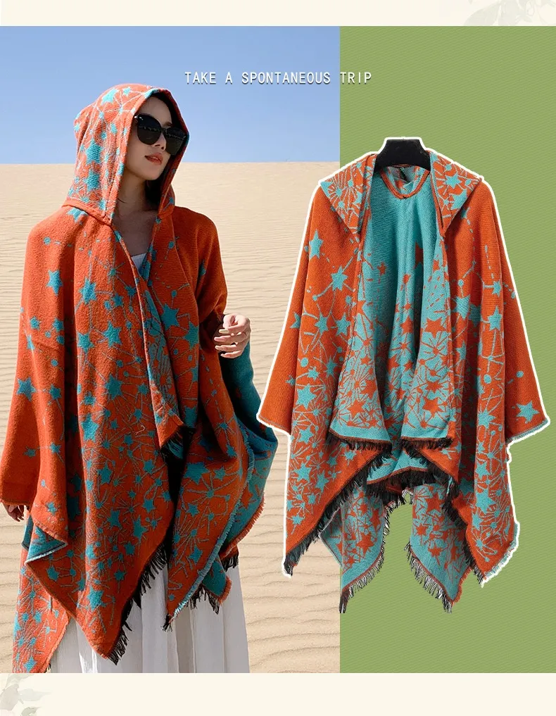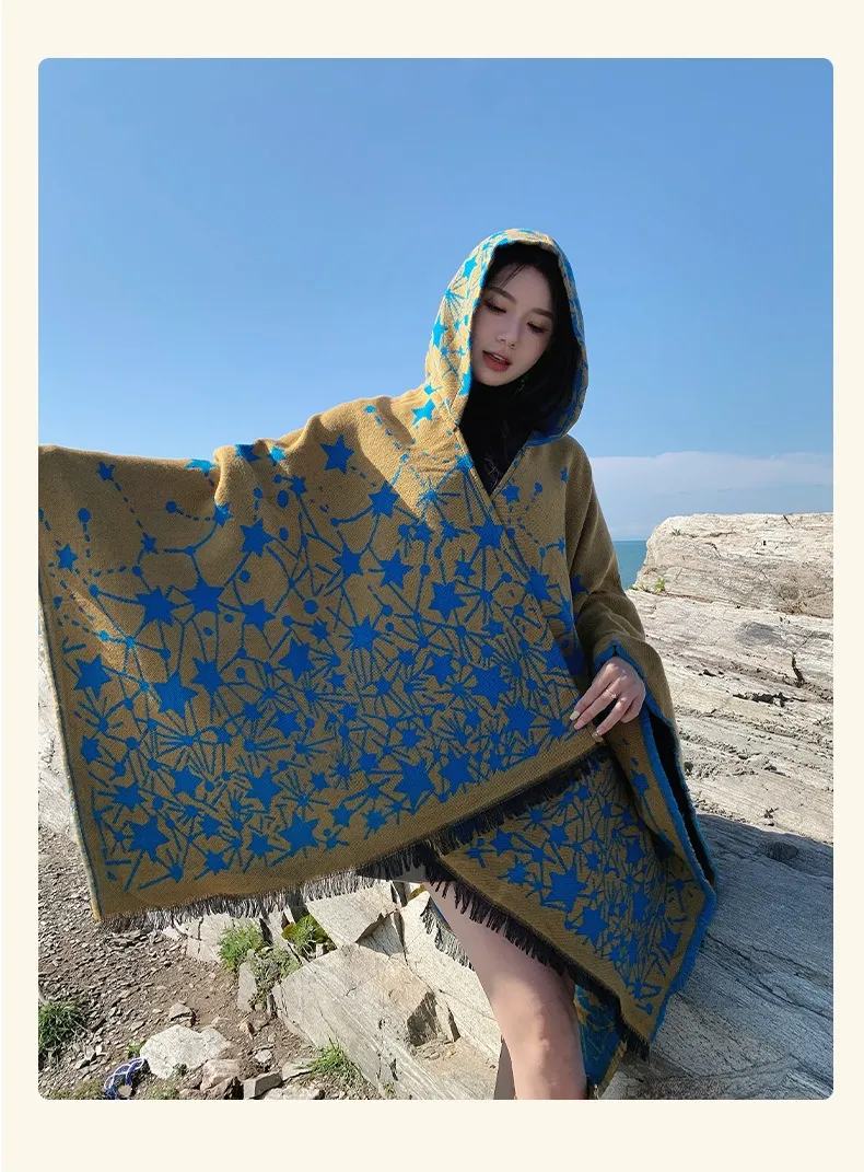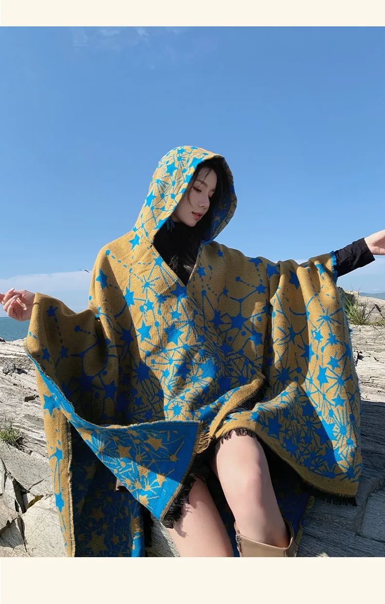 Color: Cloak starry sky-Camel Blue, cloak starry sky-orange, cloak starry sky-red, cloak starry sky-black and white, cloak starry sky-pink