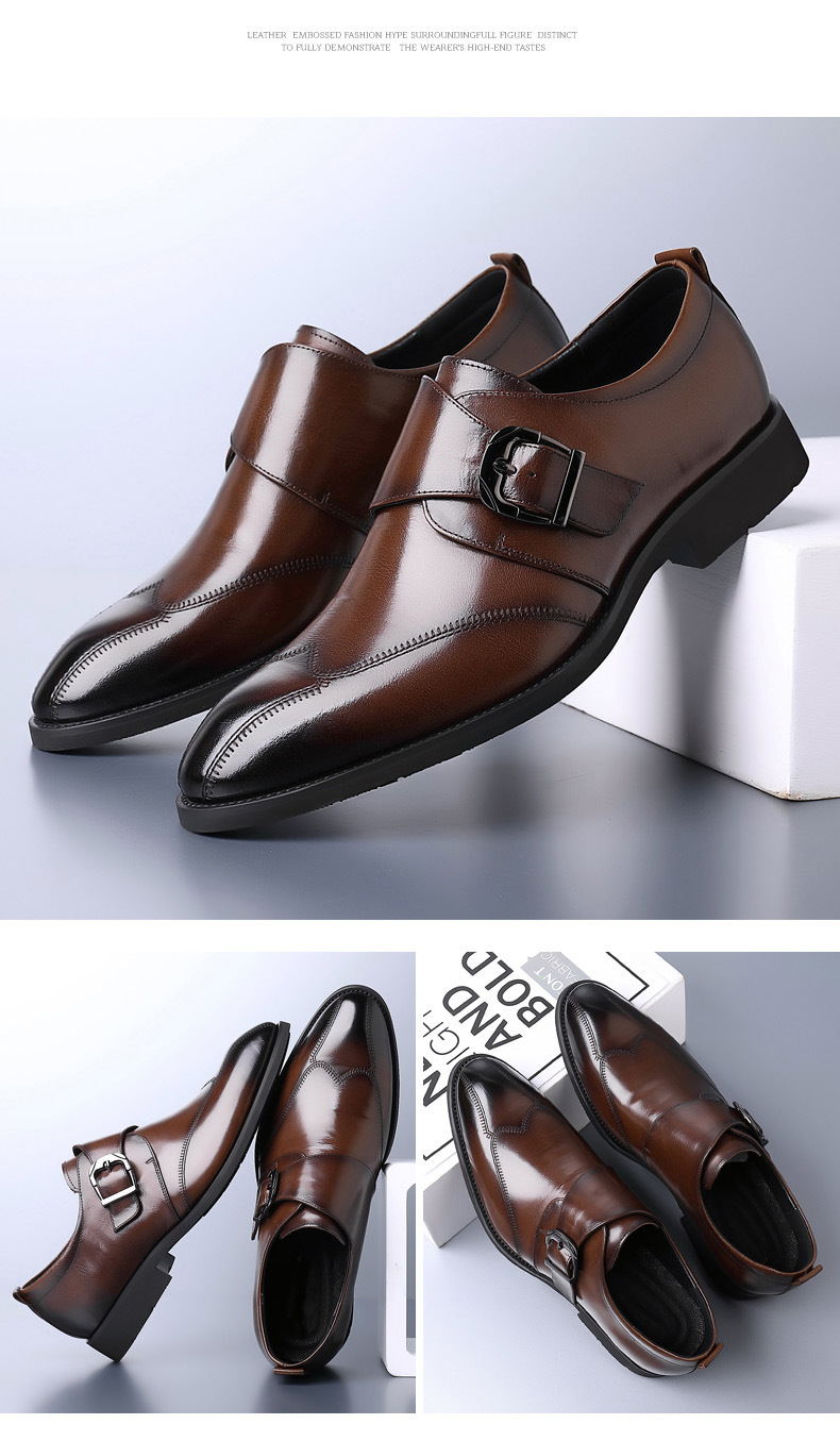 Casual Men's Buckle Color-changing Embroidered Leather Shoes