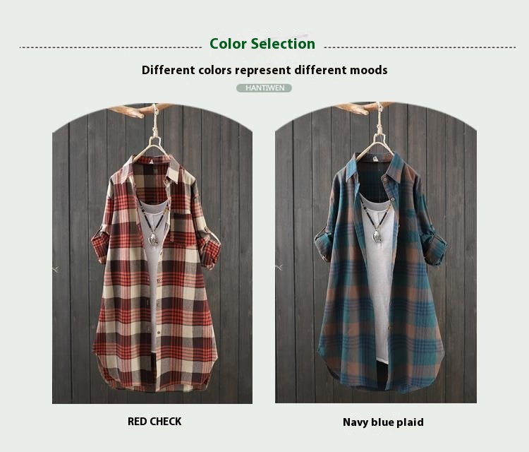 Casual Plaid Shirt Women's Mid-length Loose Korean Style