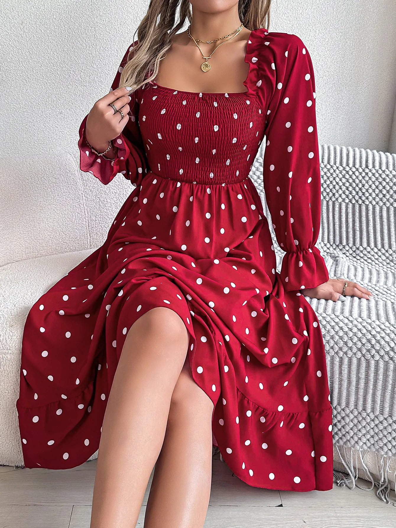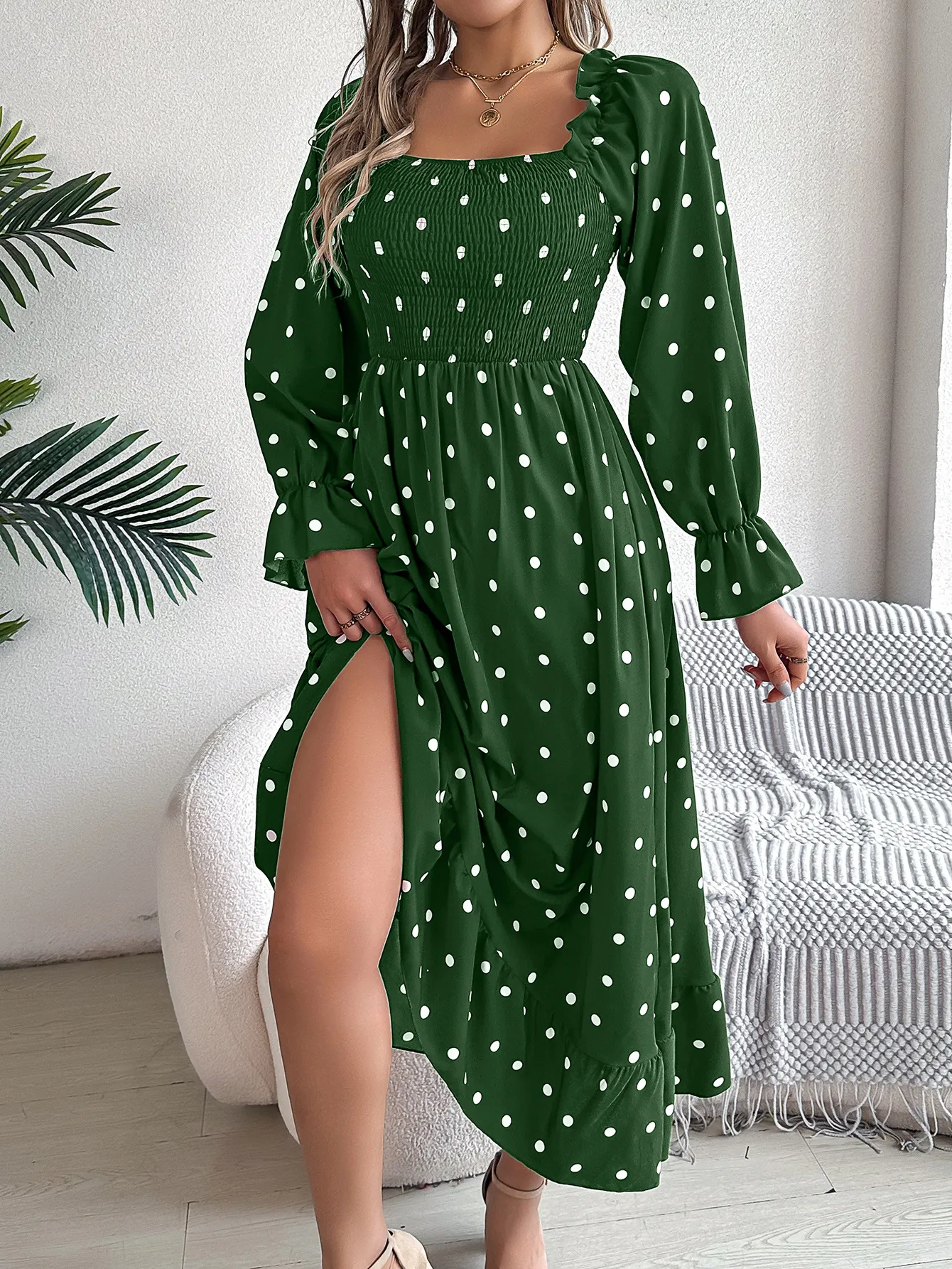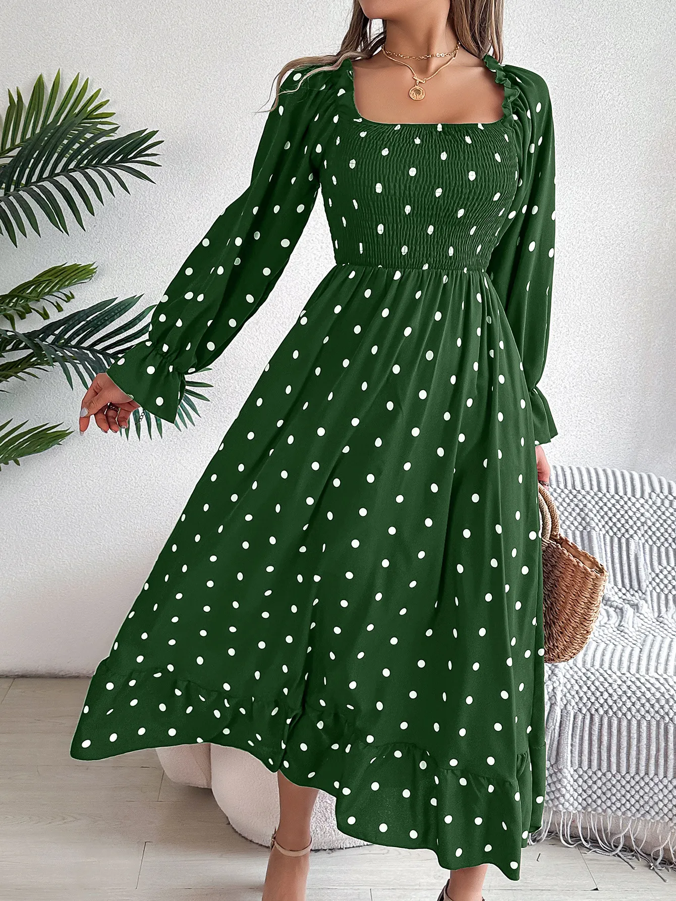 Home › Plants, Gifts, Toys & More › Gift-tree-casual-square-collar-polka-dot-swing-dress-with-wooden-ears
