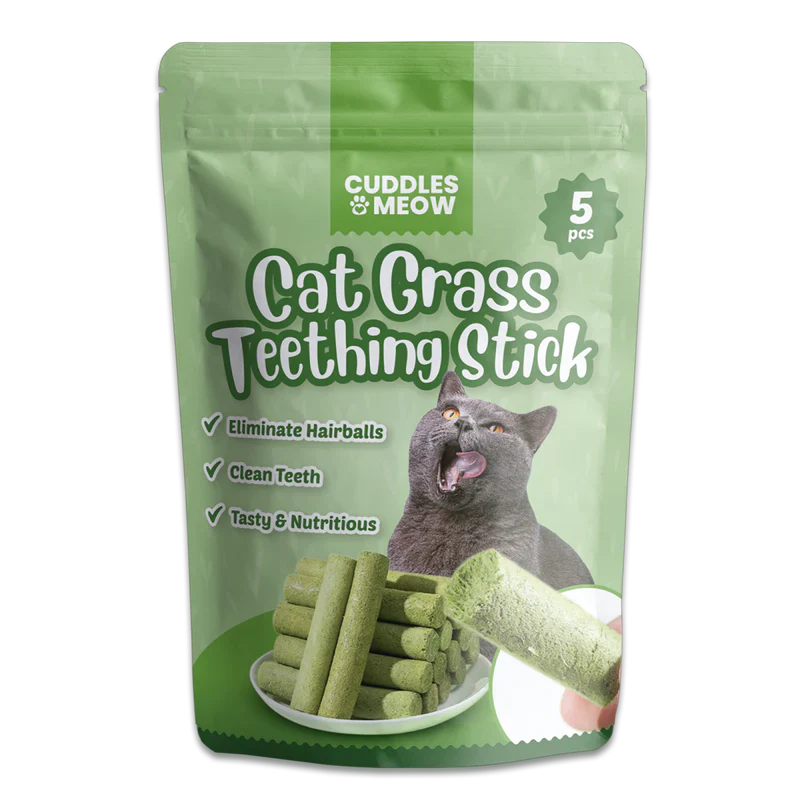 Cat Grass Teething Sticks are not just a treat for your feline friend's palate; they serve a dual purpose as a dental aid, aiding in your cat's oral hygiene and teething needs. With every satisfying nibble, these sticks gently massage your cat's gums, promoting healthy teeth and gums while satisfying their innate urge to chew.