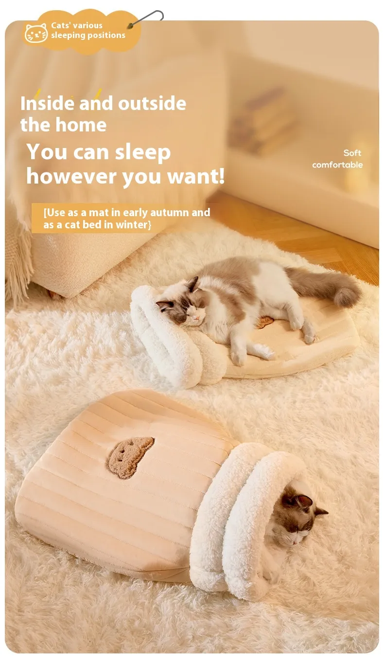 GREAT FOR PET PARENTS - With a spacious interior and a 3D entrance, this cat sleeping bag is ideal for families with multiple pets. Its design allows easier access and better air circulation, ensuring a comfortable sleep for your furry friends.