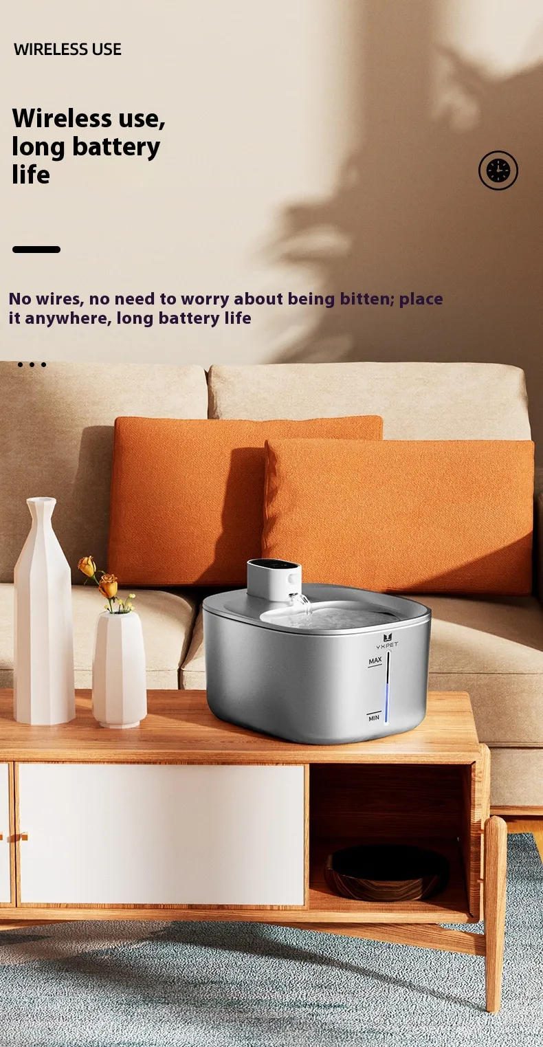 The Cat Wireless Fountain is a modern pet hydration device engineered to deliver a continuous flow of filtered water without the restrictions of power cords. Unlike traditional water bowls that can become stagnant and unappealing, this wireless fountain circulates water to maintain freshness, reduce bacterial build-up, and entice cats to drink more frequently. The absence of wires enhances safety and placement flexibility, allowing owners to position the fountain anywhere in the home—whether in kitchens, living rooms, bedrooms, or pet corners.