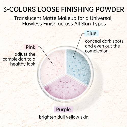 The 3-colours design usually blends more than one powder tone together in the container or pan. This helps the powder adapt better to your natural skin tone, especially within light beige ranges. It gives a more natural, not flat, look and can slightly brighten or even out the complexion while still being mostly translucent.