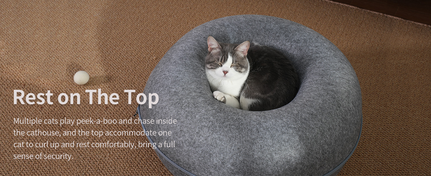 - Dual Function:Bininl Cat Tunnel adopts a double layered composite donut/circular design, meeting the needs and desires of cats for drilling and playing, bringing infinite fun to cats.The concave design of the dome of the cat tunnel bed allows another cat to rest, allowing both cats to use it simultaneously without interfering with each other.