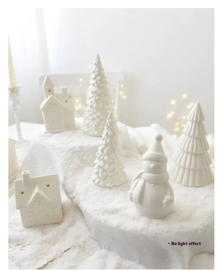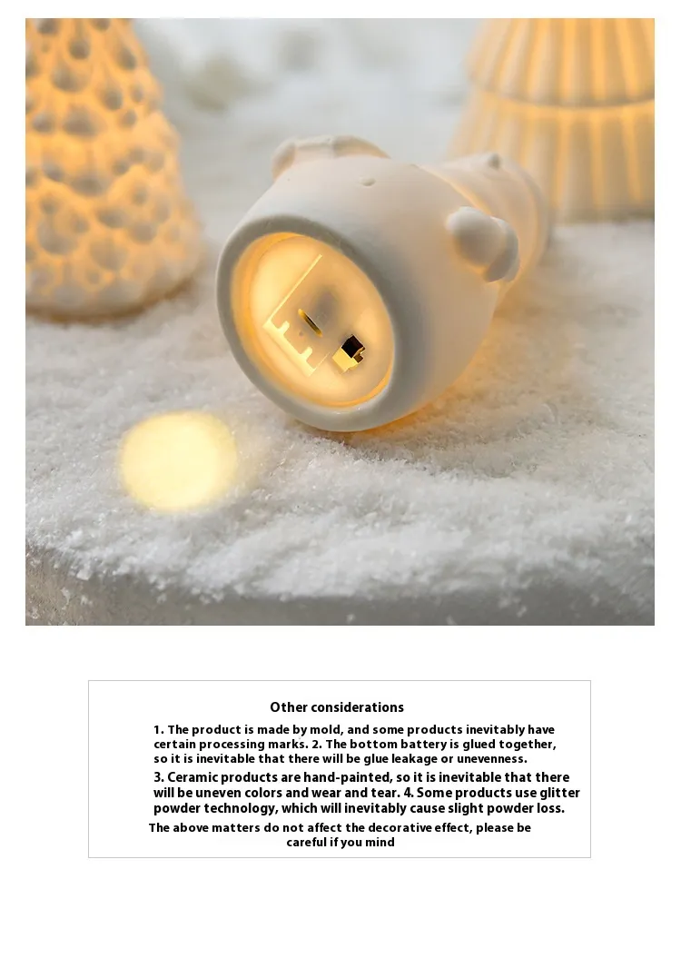 Ceramic Christmas Tree Desktop Decoration Luminous Christmas Small House Christmas Snowman