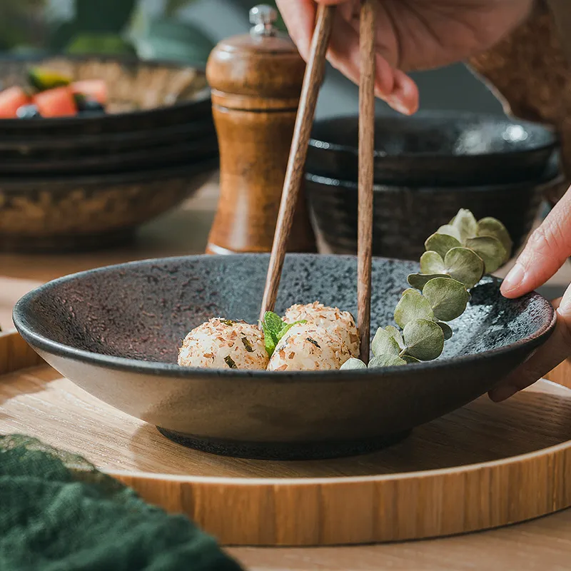 Color classification: round deep plates (Metal Black), round deep plates (tiger skin glaze), round deep plates (Leopard glaze)