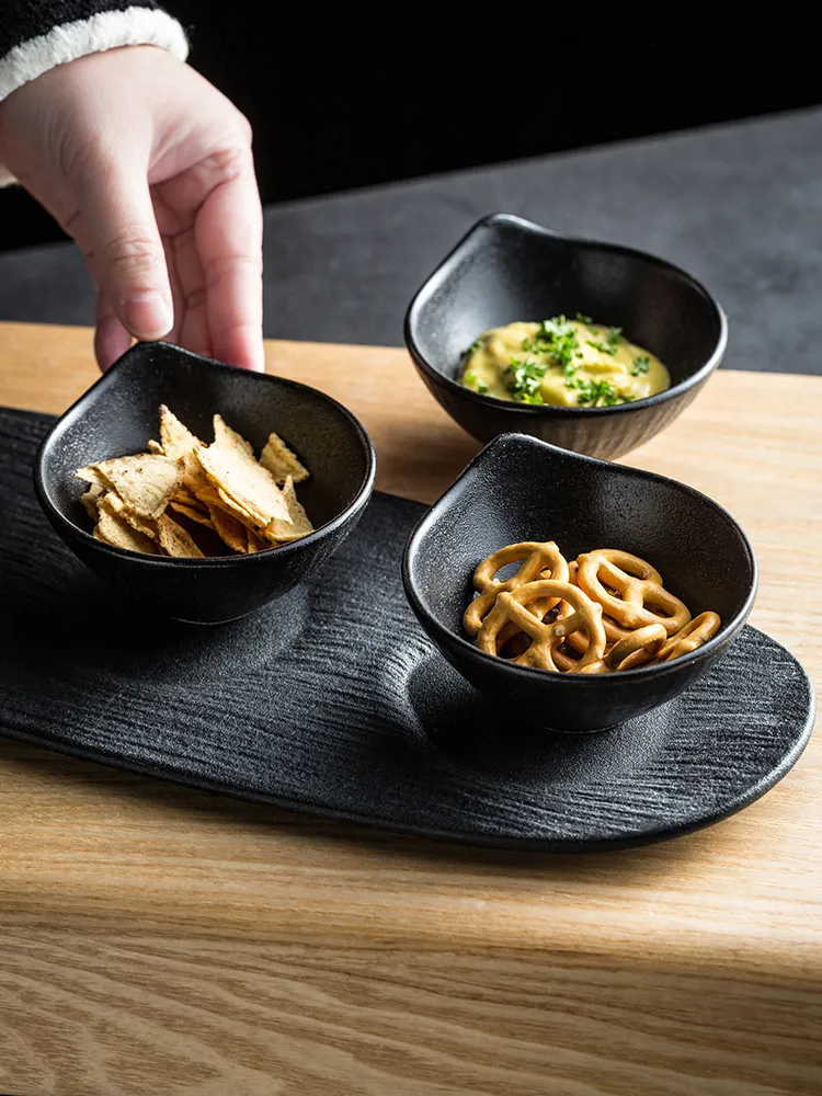 Color classification: Quicksand bowl with handle 3 quicksand oval tray-Frosted Black quicksand bowl with handle 3 quicksand oval tray-bright