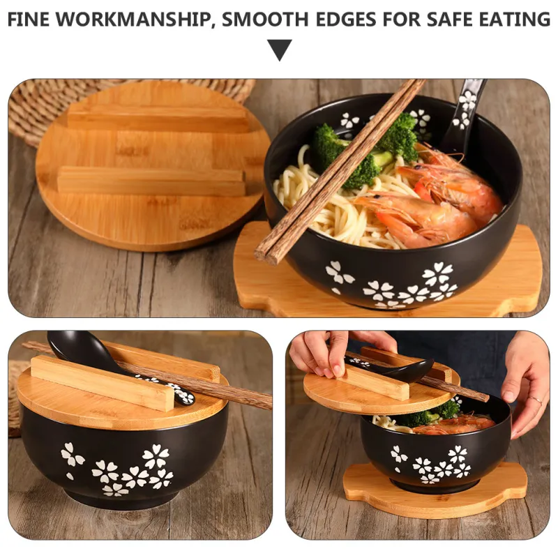 Ceramic Noodle Rice Bowl with Cover Japanese Style Soup Bowl Dinnerware