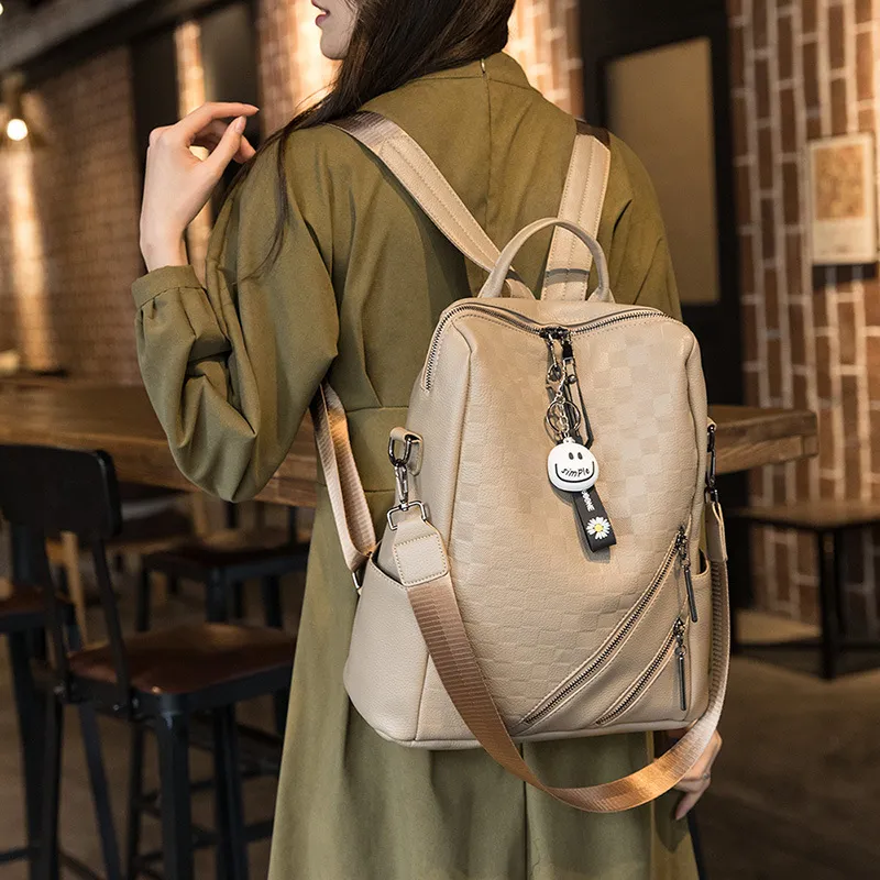 Checkerboard Backpack Casual Shoulder Bag For Women