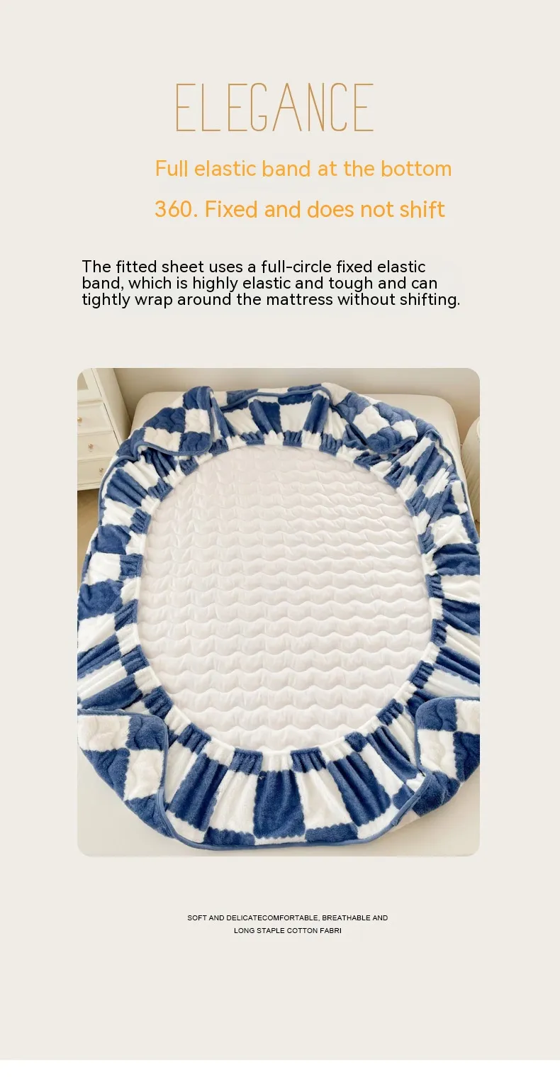 The Checkerboard Warm Plush Mattress Cover is a functional bedding accessory engineered to improve sleep comfort by adding an insulating, soft layer to your mattress. Designed to sit securely over the mattress surface, it acts as both a comfort enhancer and a protective barrier, helping extend mattress life while significantly improving warmth and softness.
