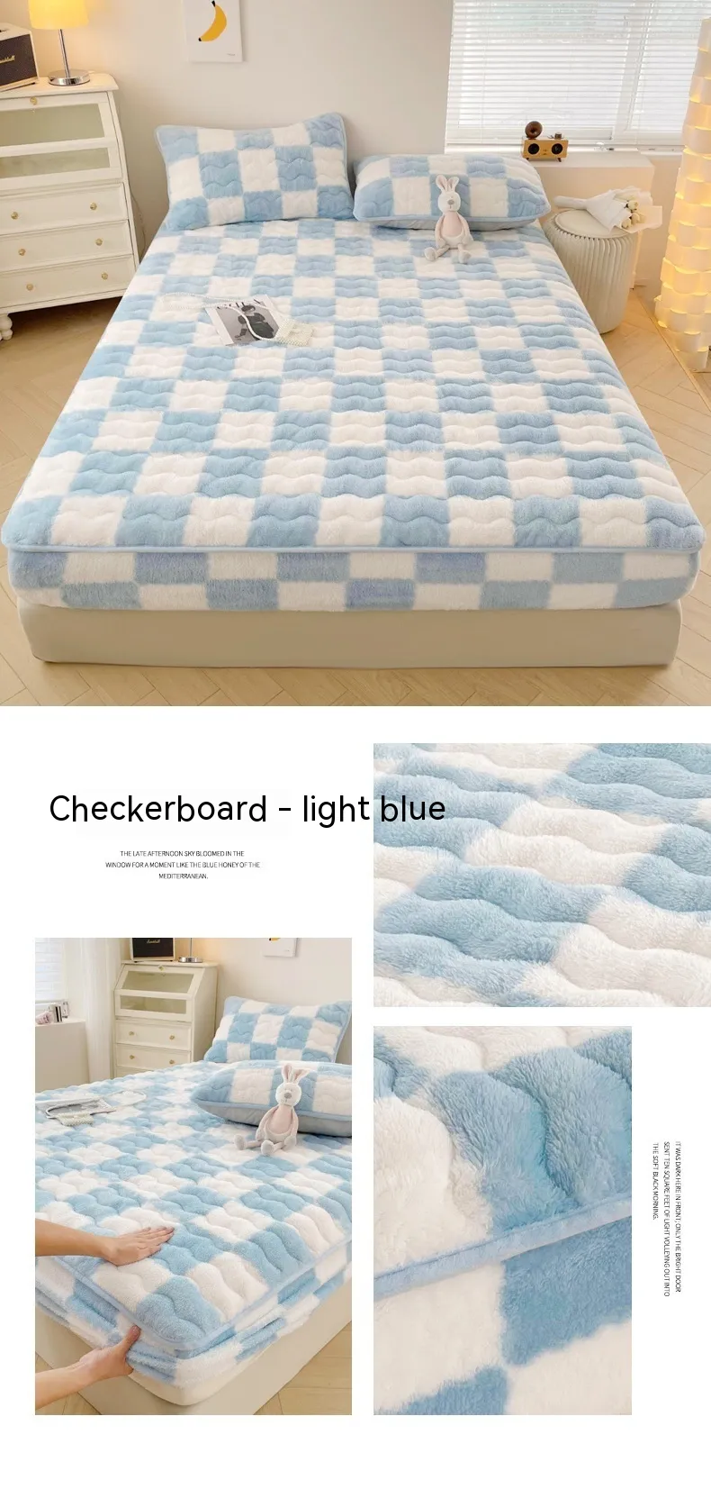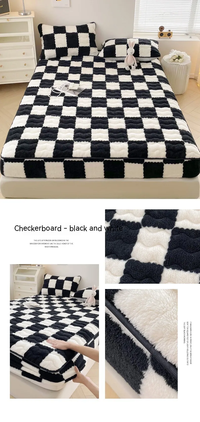 Checkerboard Warm Plush Mattress Cover – Cozy Insulated Comfort with Stylish Texture