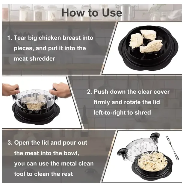 The Chicken Shredder is an essential tool that makes preparing shredded chicken and other meats faster, easier, and more efficient. Its durable construction, simple operation, and compact design make it perfect for any kitchen. Whether you’re meal prepping, cooking for your family, or hosting a dinner party, this shredder will help you save time and create perfectly shredded meat every time.