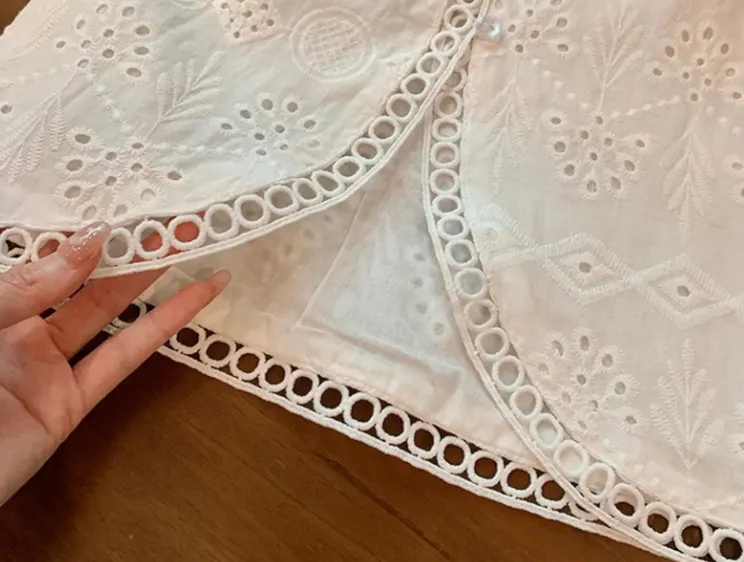 Stylish Hollow Lace Design: The standout feature of this set is the intricate hollow lace detailing on the vest. This