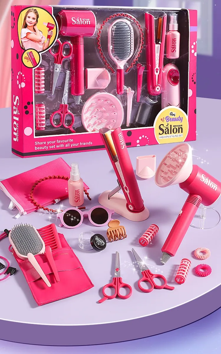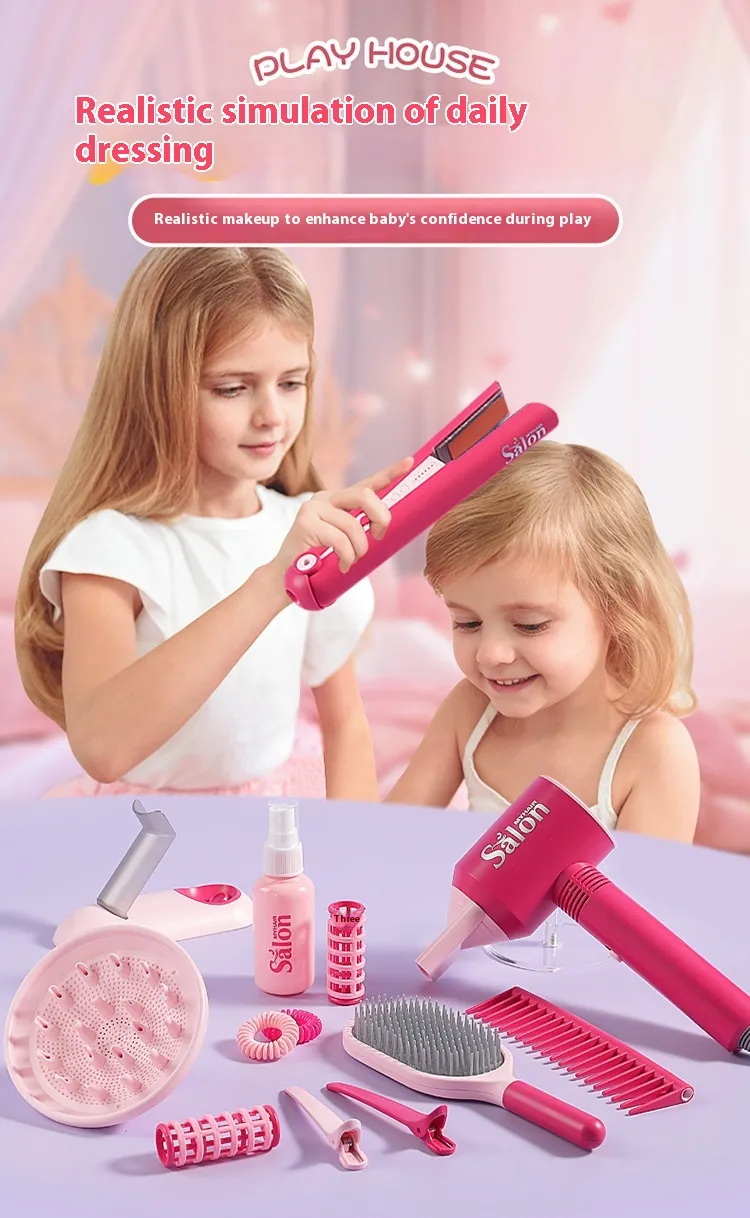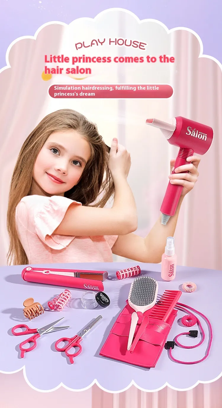 The Children Play House Hair Salon Suit Toys provides more than just fun; it also helps kids develop important skills. Through imaginative play, children can enhance their creativity and critical thinking. By pretending to be a hairstylist, your child will create various hairstyles, experiment with color and styles, and practice problem-solving skills.
