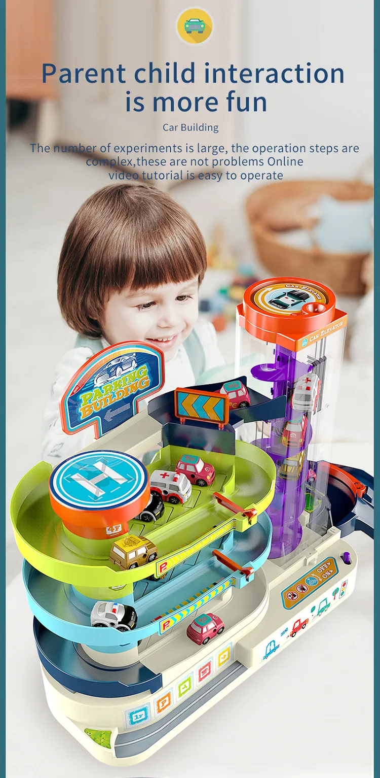 Children's Adventure Steering Wheel Car Building Parking Lot Intelligence Brain Rail Car