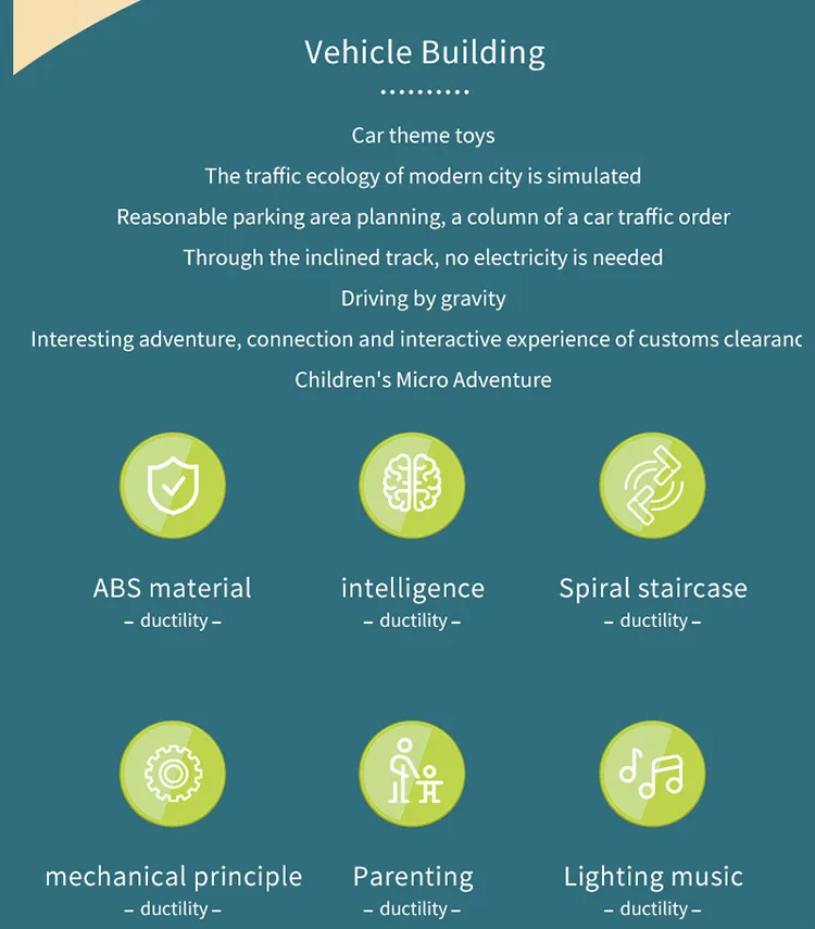 - Motor Skills: Improves fine motor skills through hands-on interaction with the toy pieces and cars.