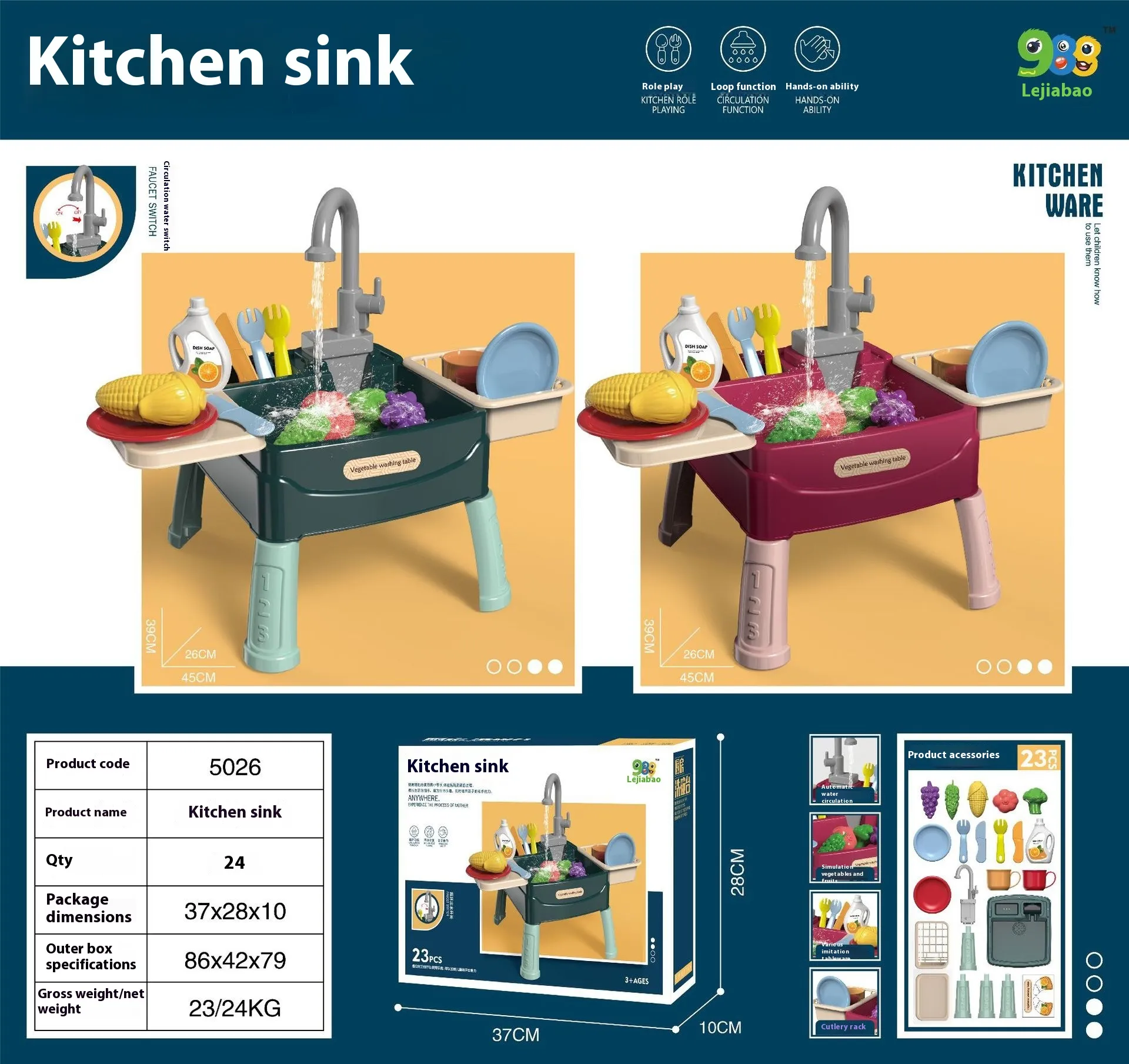 The water outlet feature adds a new dimension to traditional role-playing toys. During the warmer months, kids can use it for refreshing water play, splashing around and cleaning toy dishes in the basin. In colder months, it can be used indoors for pretend washing while enjoying the warmth of a cozy home setting. This versatility makes it a year-round favorite for playtime.