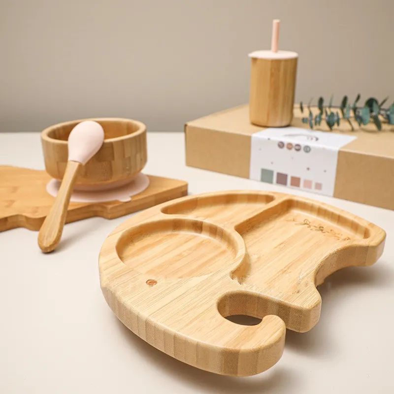 How to Care for Your Children's Elephant Suction Cup Dinner Plate Round Bamboo Bowl Four-Piece Set