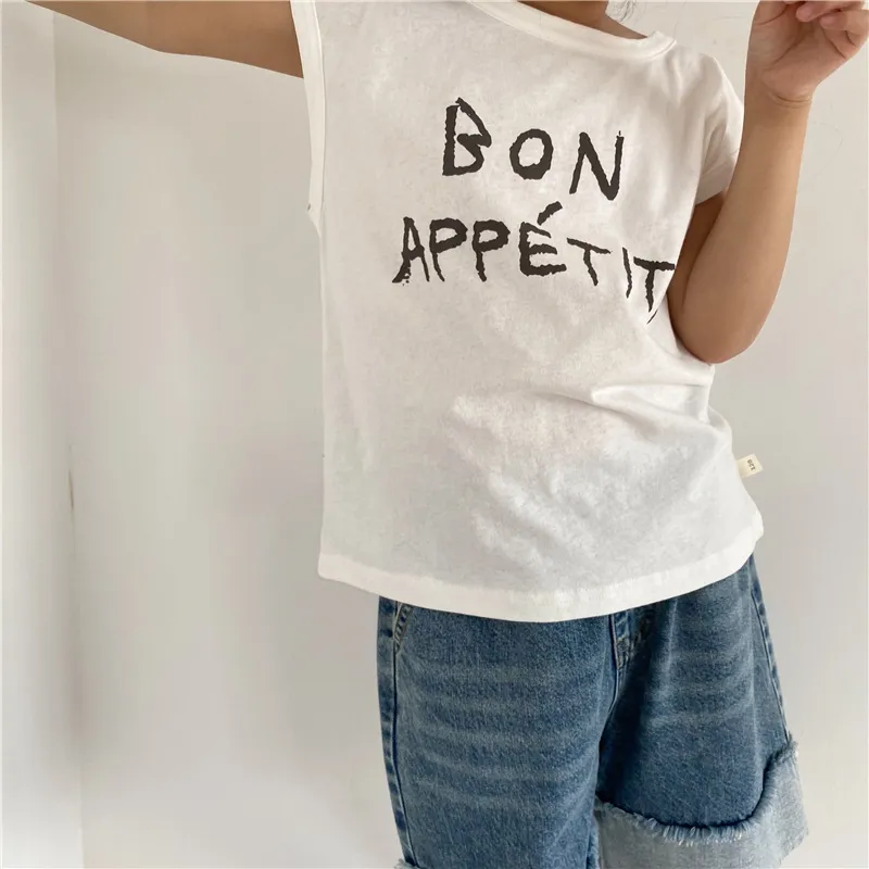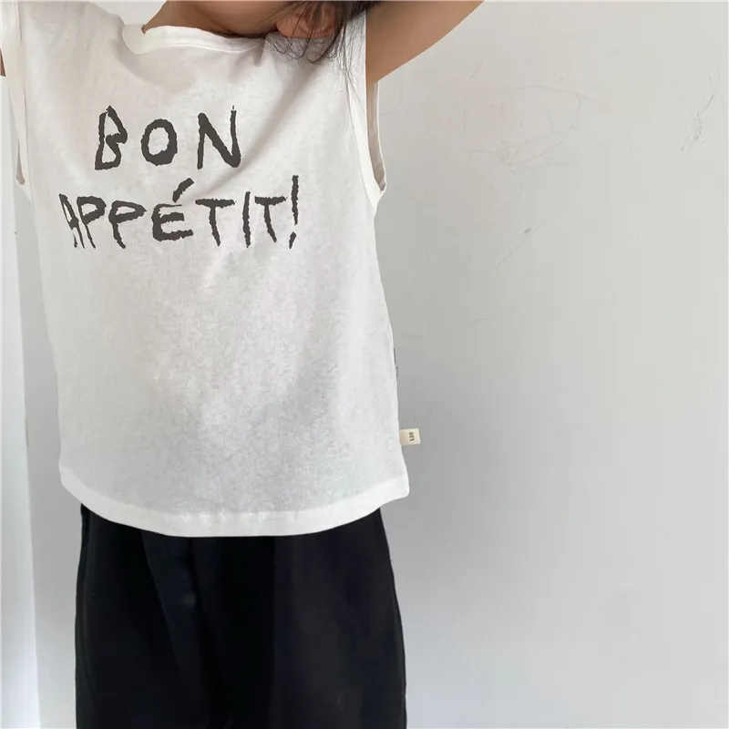 Children's Letter Printed Sleeveless Vest For Boys And Girls Loose Casual Top