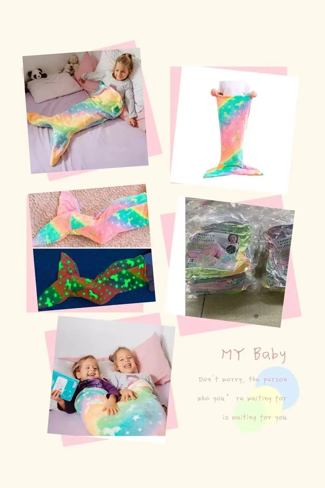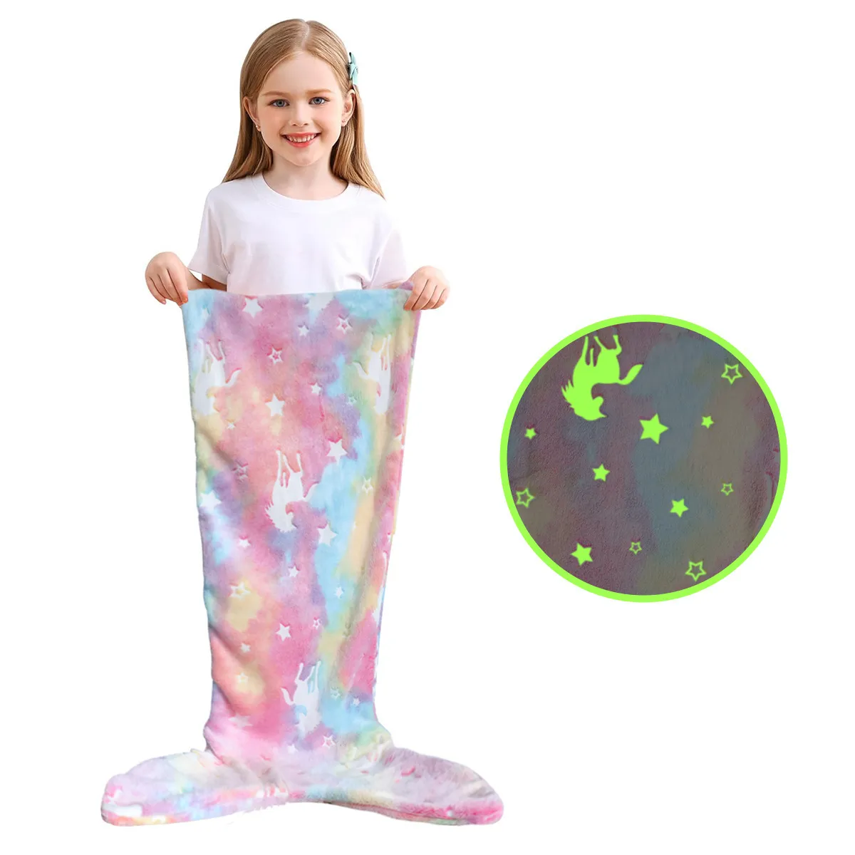 Order the Children's Mermaid Luminous Sleeping Bag Double-Sided Blanket today and give your child a cozy, fun, and imaginative sleep experience!