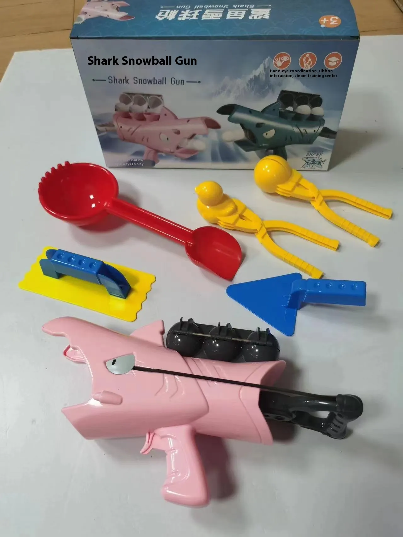 Children's Outdoor Snow Shark Cute Cartoon Snowball Gun Launcher Clip Fight Toy