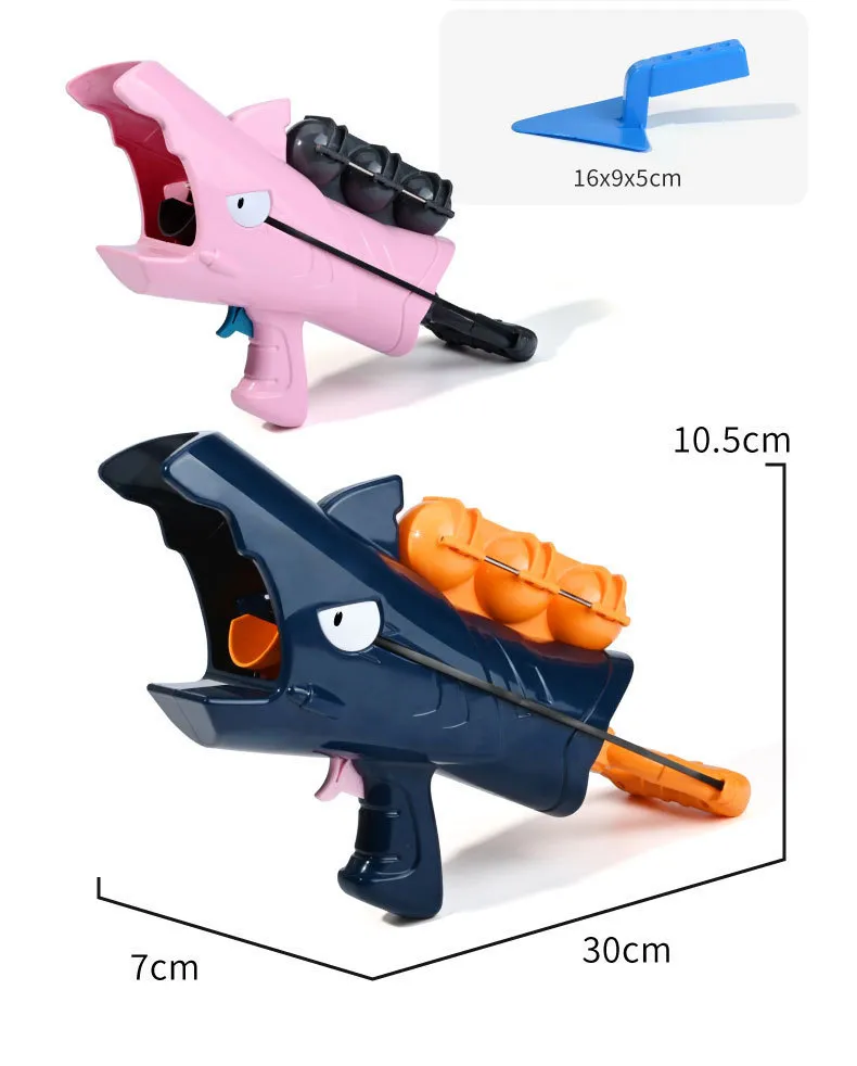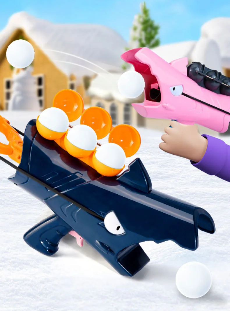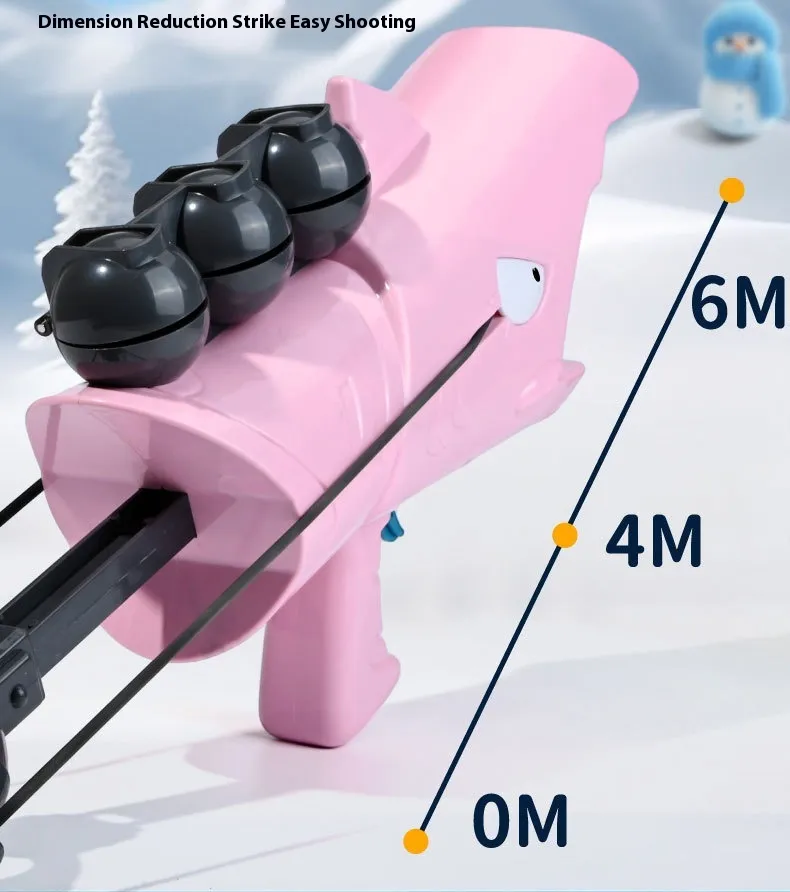 The adorable shark-themed design adds a fun and playful touch to this snowball launcher. Its vibrant colors and cute cartoon features make it a favorite among kids.